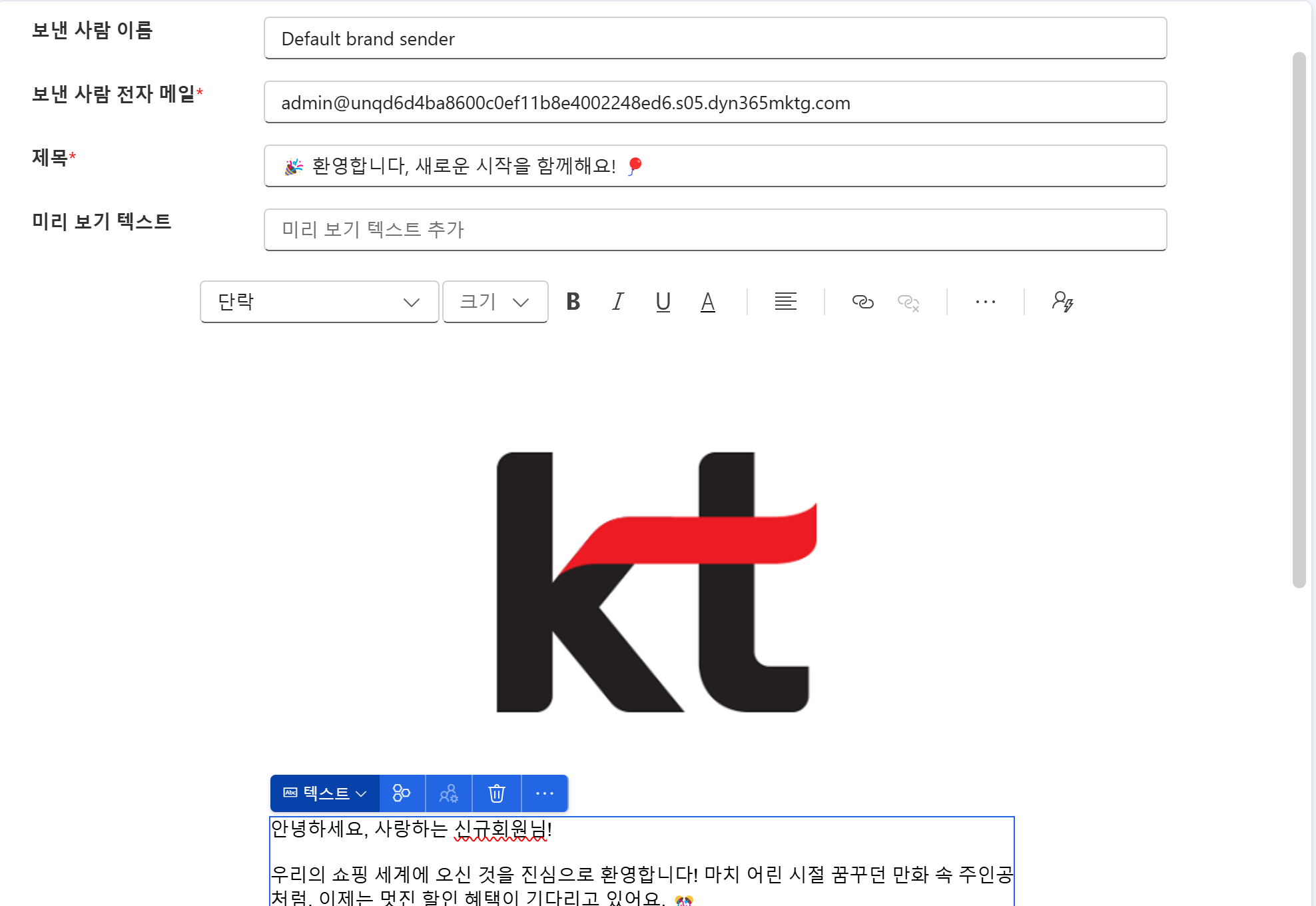 - 콘텐츠 내용에서 회원 이름을 가져올 수 있도록 개인화 변수 처리를 합니다.