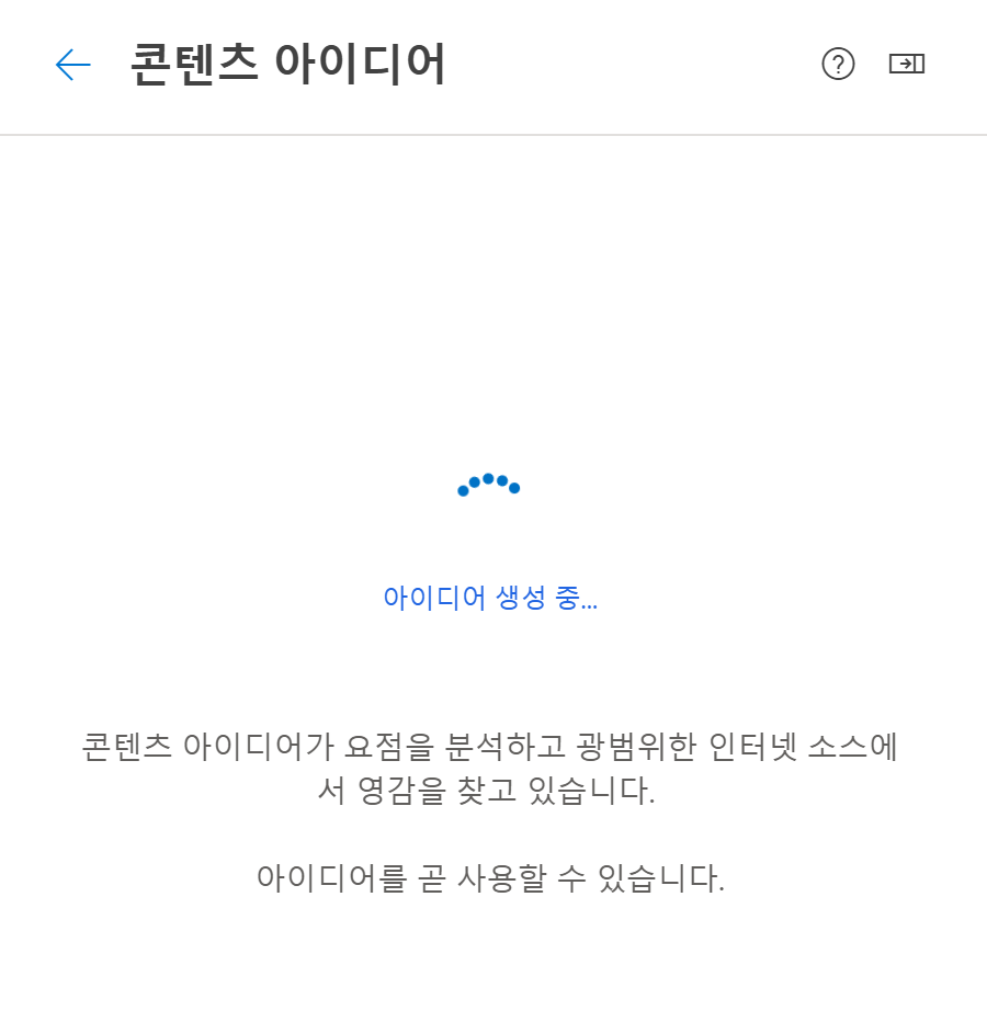 - 그리고 다시 콘텐츠 아이디어 항목으로 이동해서 [아이디어 얻기]를 선택하면 아래와 같이 한글로 변경됨을 확인할 수 있습니다.
