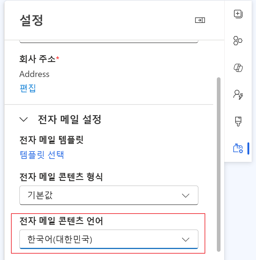 - 전자 메일 콘텐츠 언어를 "한국어"로 지정해줍니다.