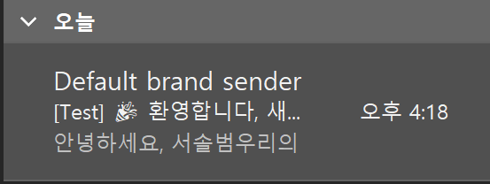 - 메일 계정에서 테스트 메일이 도착했는지 확인합니다.
