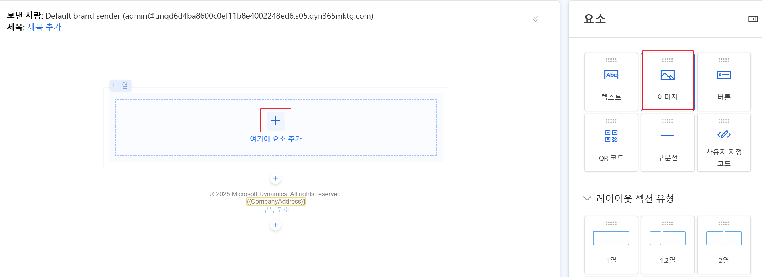 - 하단에 레이아웃 섹션 1열 추가 후 이미지를 넣어줍니다.