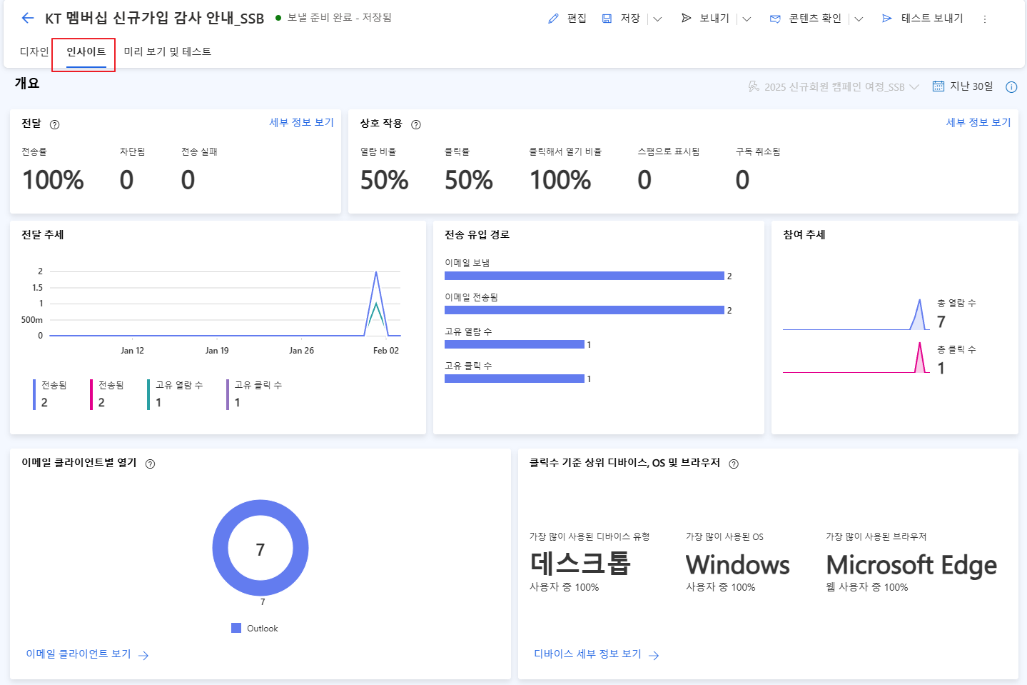 - [인사이트] 탭으로 이동하면 아래와 같은 차트 형식으로 분석할 수 있습니다.