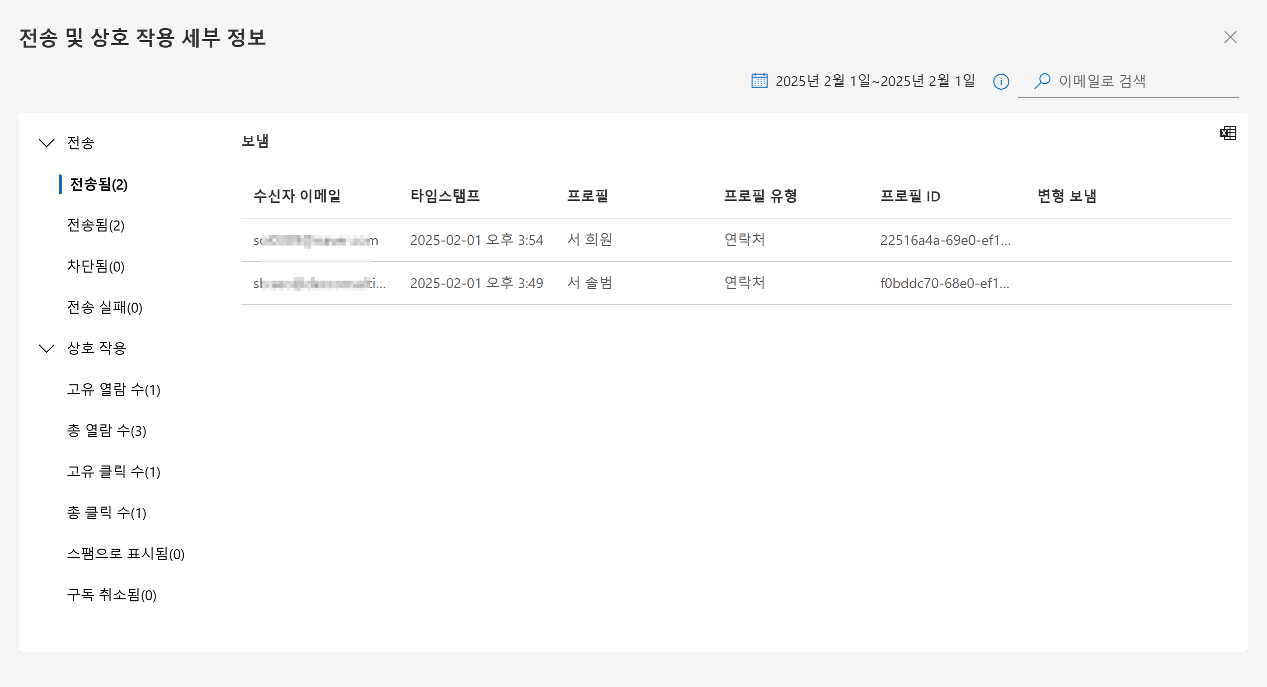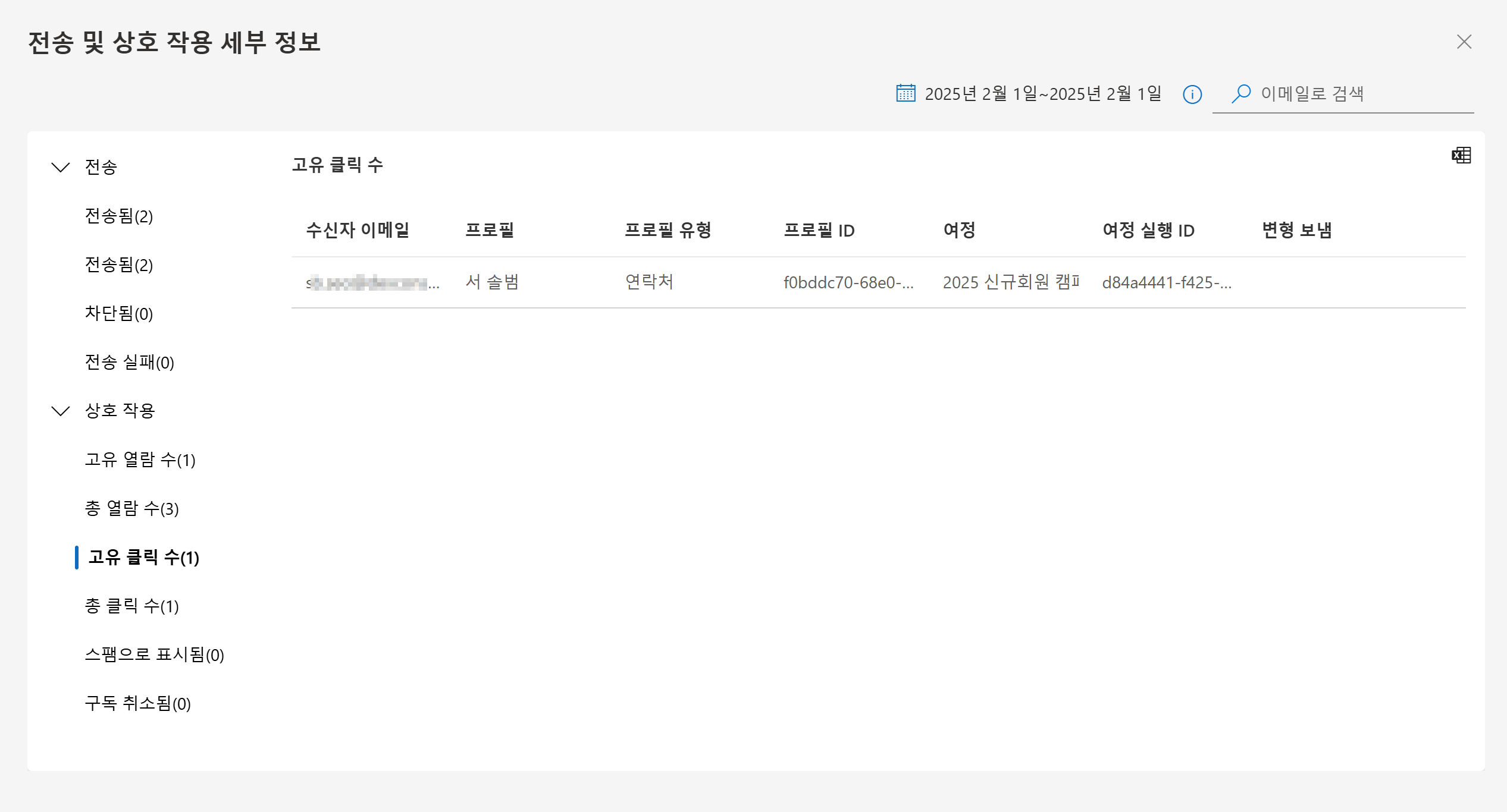 - 발송한 대상과 열람/클릭한 대상 확인도 가능합니다.